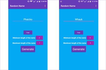 Generator Nama berfungsi di Android 9.0 dan yang lebih baru. Versi aplikasi saat ini adalah 1.5.4.
